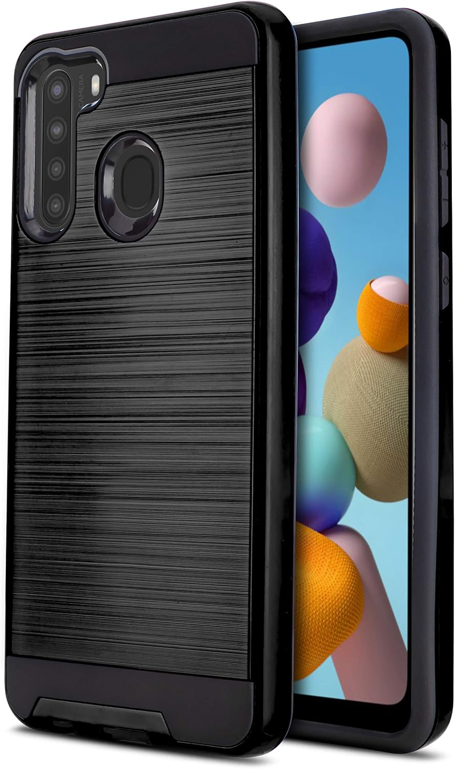 Amazon Com Casemart Phone Case For Samsung Galaxy A21 Protech Series Black Shockproof Brushed Cover For Samsung Galaxy A21 Tracfone Simple Mobile Straight Talk Total Wireless
