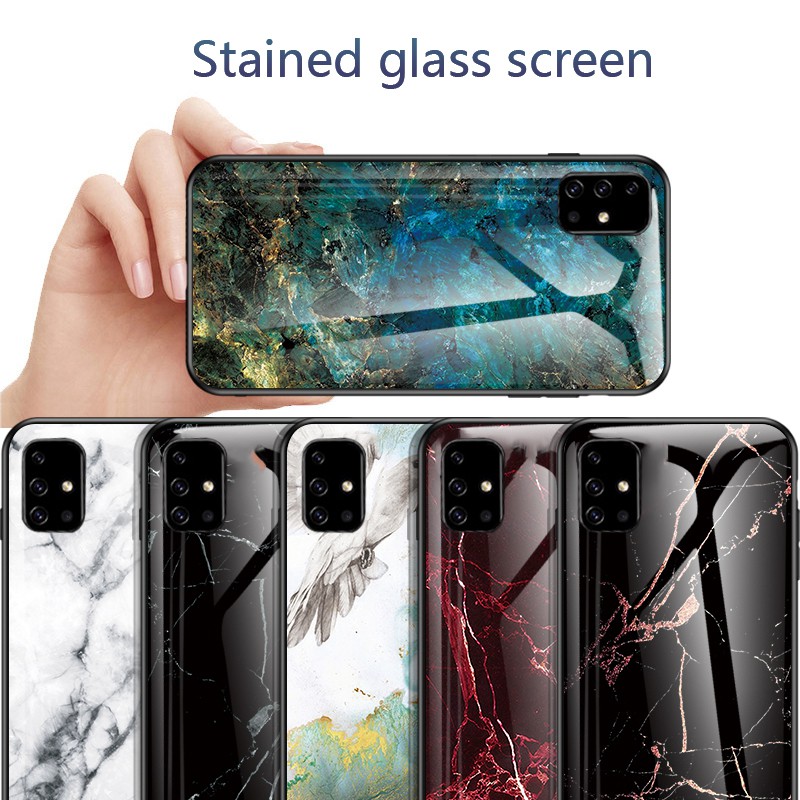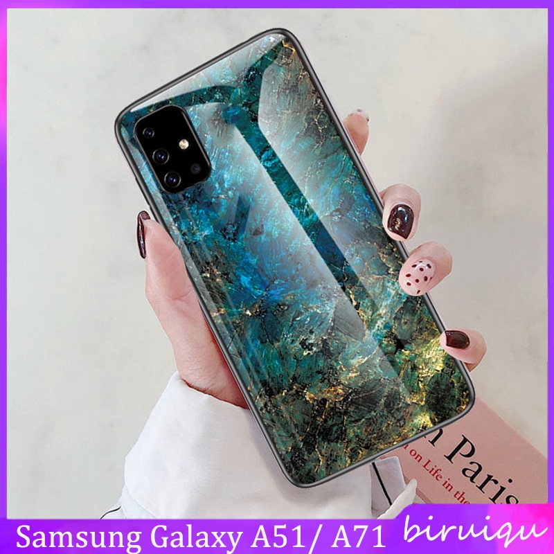 Samsung Galaxy A51 A71 Hard Case Marble Glass Back Soft Silicone Edge Shockproof Cover Shopee Indonesia